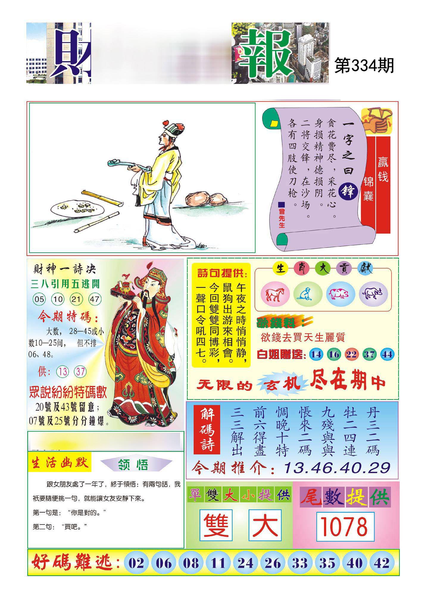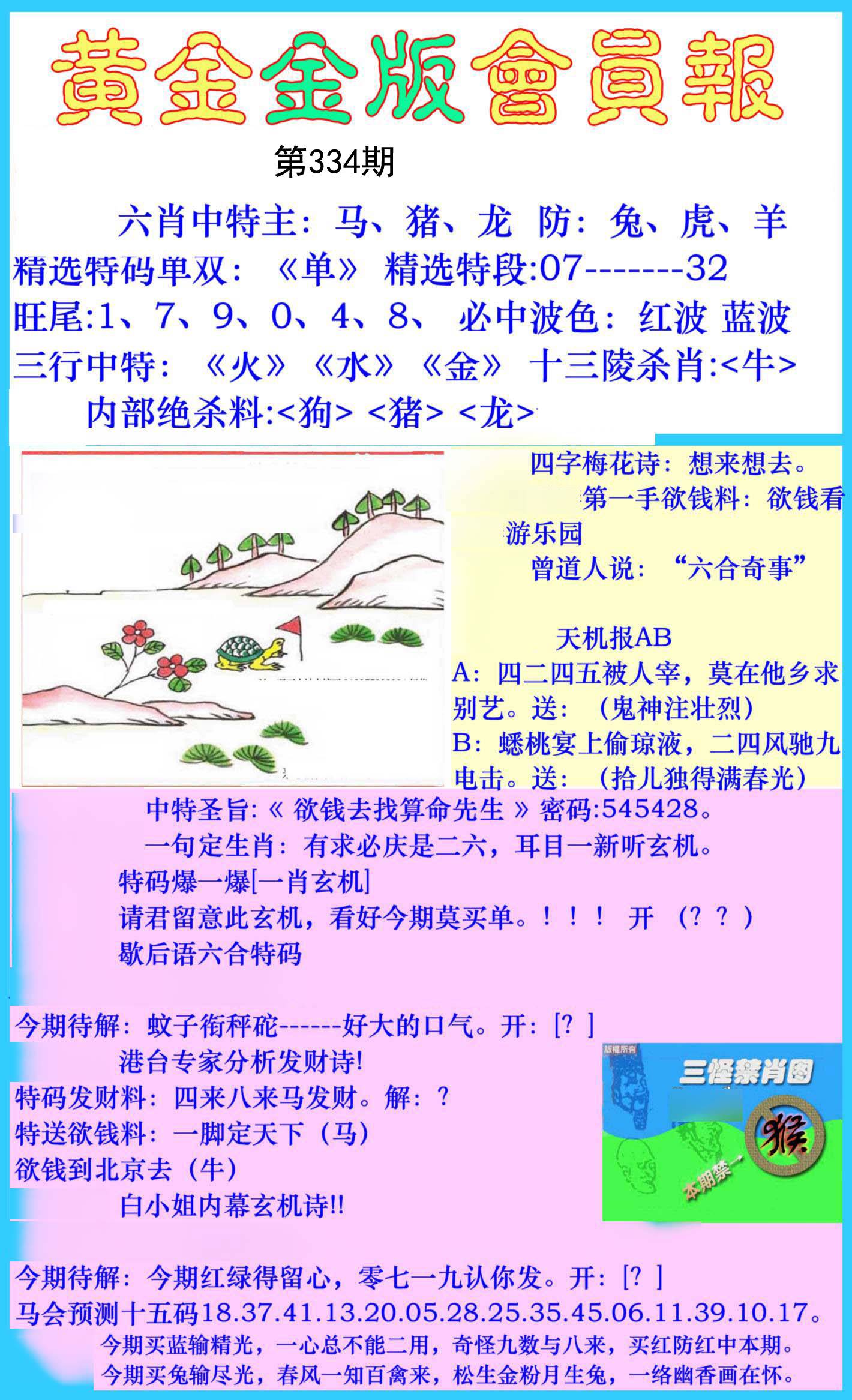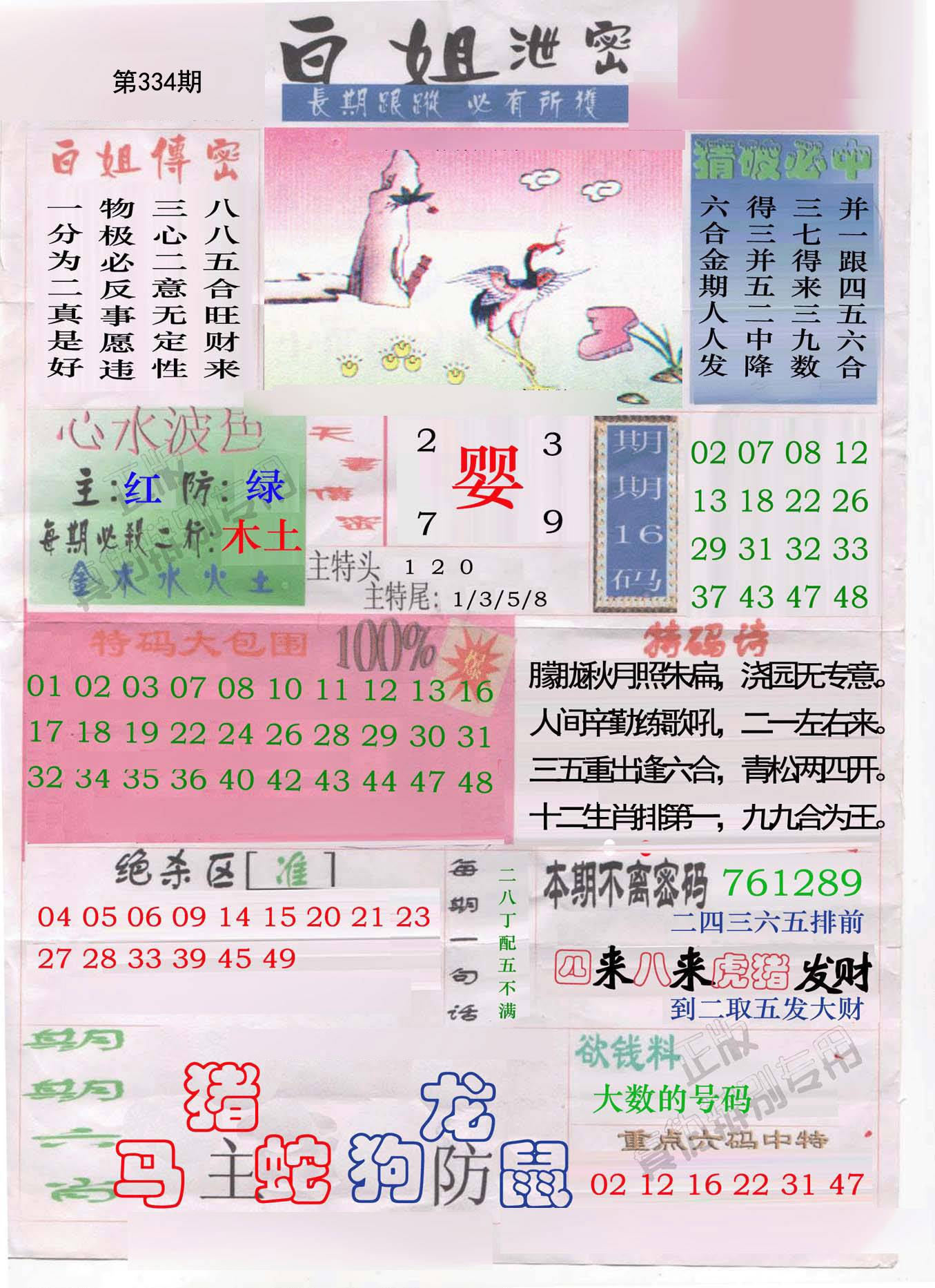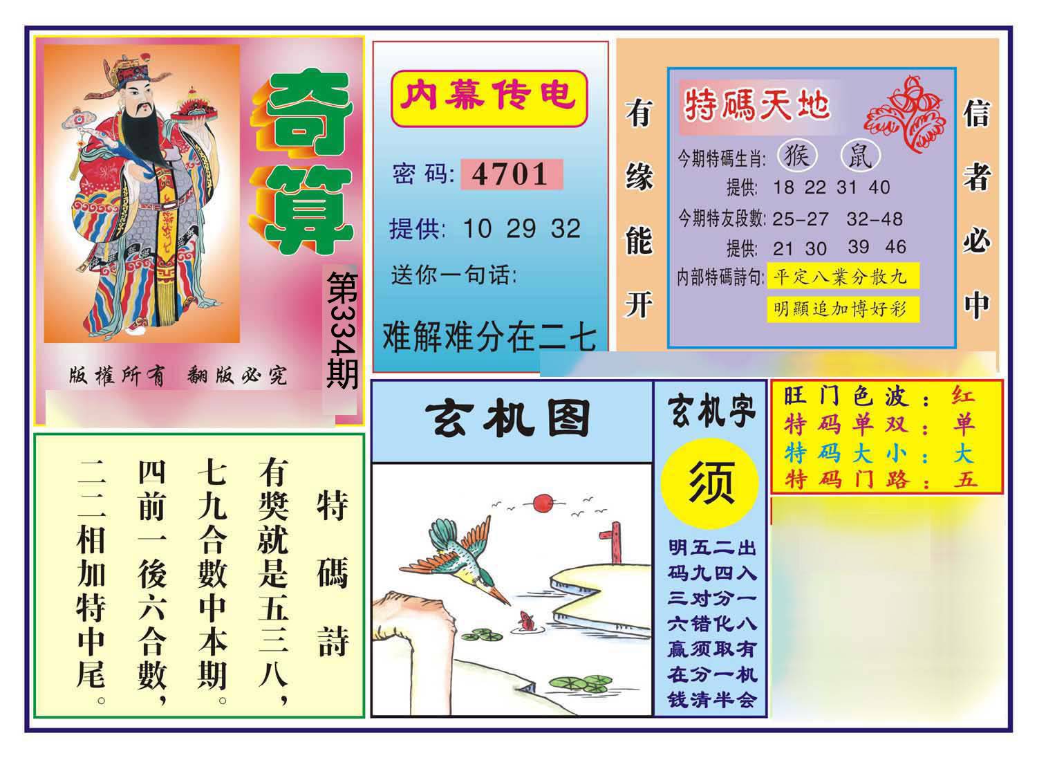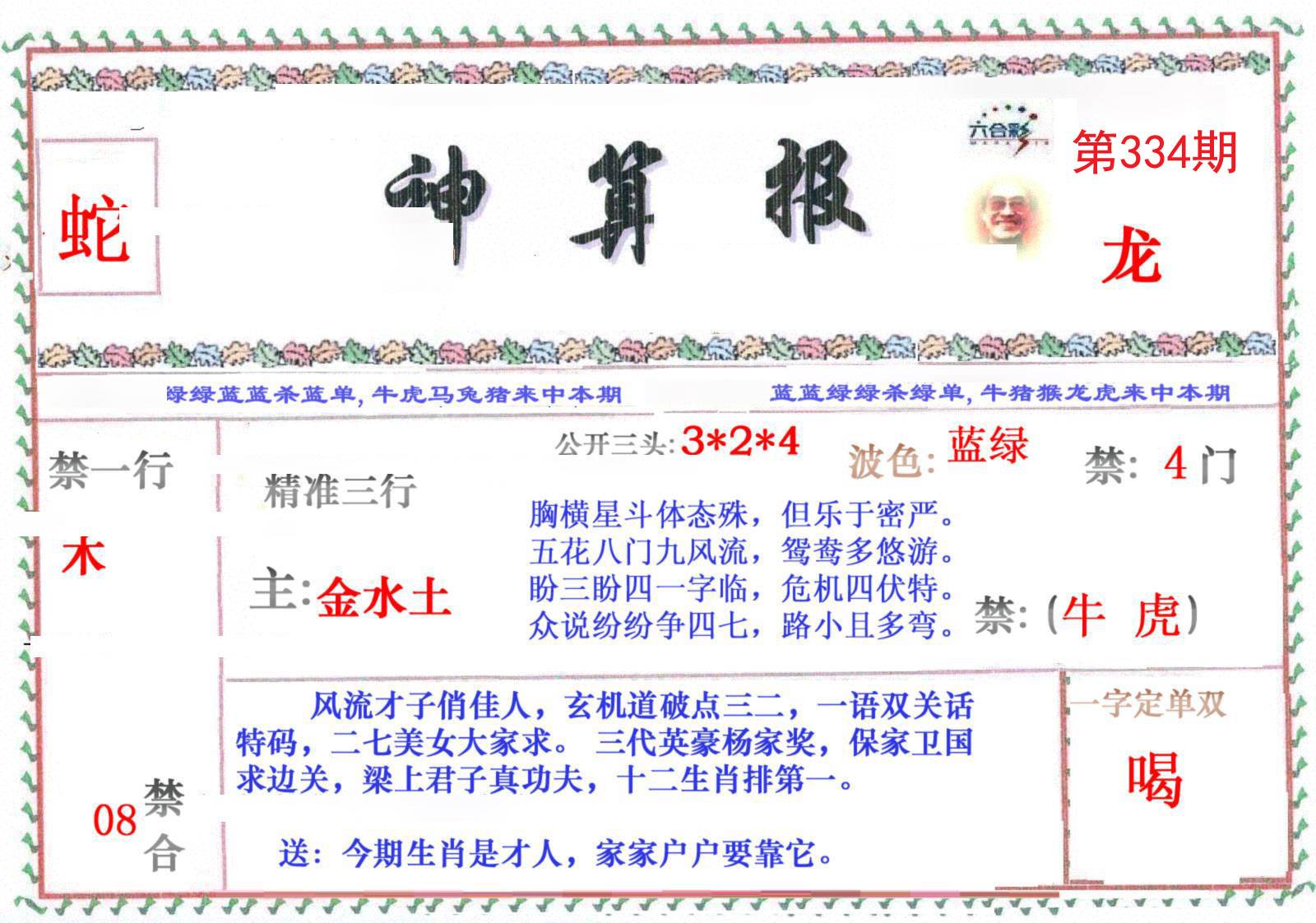 334 期: 鸡虎猪猴羊牛鼠蛇马 開: ?00
